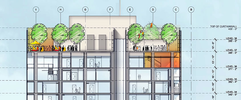 Atop the building would be a publicly accessible open space that connects to a bar on the 36th floor. A rooftop garden that meets the city’s Better Roofs Ordinance would also be included as the project seeks to secure LEED Platinum status. Doing so will help fast-track the Transit District/Yerba Buena neighborhood building as a “green” project under development.