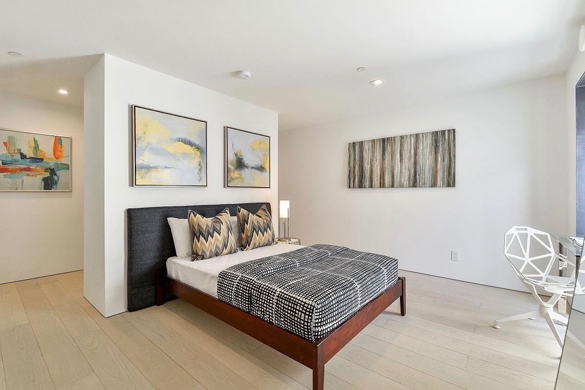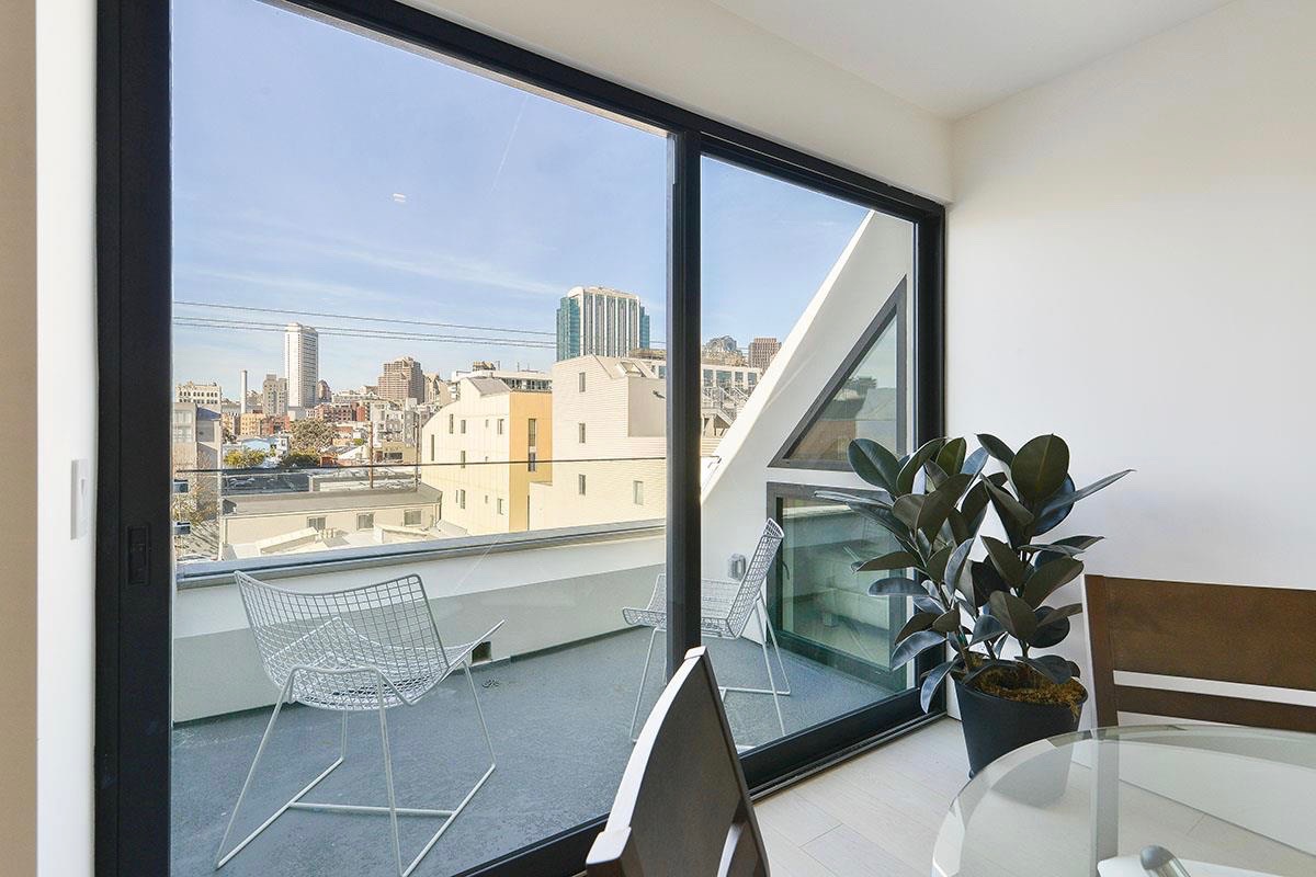 The ground floor features office space and eight parking spaces in the rear while the two-bedroom residences are spread throughout the other four floors of this contemporary structure. Residents will enter through a sleek lobby with an intercom system and an elevator to take them to their unit or all the way up to the common roof deck.